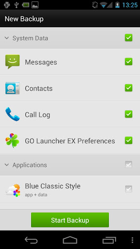 -Backup contacts,messages,GO launcher settings and apps;
